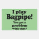 I Play Bagpipe. You Got A Problem With That? Does someone have a problem with you making music? Remember, it's THEIR problem, not yours! See this design on t-shirts, hats, mugs, and other products.