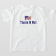 Thank a veteran for your freedom. The perfect t shirt for Veteran's Day, or any day of the year to show your patriotism, gratitude and appreciation for those who serve and have served in uniform. Flag design on front, Thank a Vet slogan on back.
