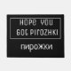 Hope you got Pirozhki - funny text design with the word Pirozhki repeated in Russian lettering . Great for anyone who likes the baked or fried buns stuffed with a variety of fillings .