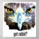 A colourfully rendered golden eagle with the words got rabbit? below it. The piercing golden eyes seem to stare right through you as if to say if you don't have rabbit, you'll do very nicely.