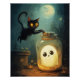 A cute cat with a ghost in a jar
