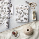 Hand-drawn in black ink, this wrapping paper features a beautiful pattern of skulls, roses and spiderwebs in cream and blush tones, all against an elegant white background.