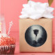 A dark and mysterious wedding sticker with a cool illustration of a goth /emo style black rose with red dripping blood on its petals. A black grunge background with an off-white colour in the centre highlighting this moody and macabre rose.