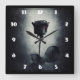 Goth Black Rose Dripping Blood on Black Grunge Square Wall Clock