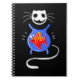 Spiral notebook with a skeleton ghost kitty cat and gold fish bowl.