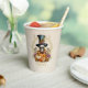 Goth Thanksgiving with a creepy skeleton in a top hat with fall leaves and pumpkins.