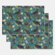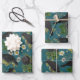 Goth Crows & Black Roses Deep Teal Pattern Wrapping Paper Sheet