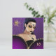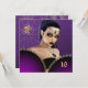 Dark gothic girl on muted purple background, golden spider and web in the corner and all zipped up in dark purple curved open zipper - customise this for any gothique invitation - perfect for her birthday Goth Girl GraphicAllusions