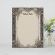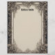 An intricate scrollwork frame in tarnished, old gold on a black background gives a Goth vibe to this darkly elegant stationery. The centre is aged parchment, and the back is plain, in the same old parchment colour.