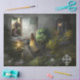 Wonderful moody fantasy image of a young woman in yellow frock stepping up after a young man into a book! Features Gothic arches, dark tone overall, and lantern lights. 18 lb tissue paper. GenerativeContent.