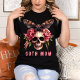Goth Mum Floral Skull Moth Pink Mother's Day T-Shirt - This personalised Gothic Mother's Day tee features a skull with moody, pink florals on a spooky black background. "Goth Mum" is written in a distressed, gothic font. Perfect for alternative moms, moms who enjoy all things spooky, Halloween, and horror, and goth mothers who like the darker things in life.
