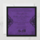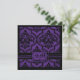 Purple and black damask print grunge-look Gothic wedding invitation card.
