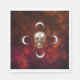 Goth Magik vintage skull illustration with four silver crest moons on red celestial background.