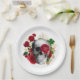 Goth Skull with Red Flowers & Gold Leaves Paper Plate