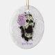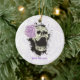 Goth skull with vintage purple rose keepsake ceramic tree decoration