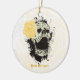 Goth skull with vintage yellow rose keepsake ceramic tree decoration