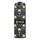 Ancient skulls in a blue and ivory damask-like floral pattern creates a beautiful, unusual, and Gothic thermal tumbler. Personalise with your name in a black band in the middle.