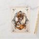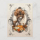 Goth Thanksgiving invitation with a creepy Victorian woman with fall leaves and pumpkins.