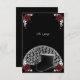 A vintage inspired design including a black top hat and wedding white lace fan with deep red roses on a jet black background. For Steampunk, Vampire, and Goth weddings and events.