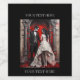A Gothic Wedding couple dressed in wedding attire standing under a Roman archway. The background is dramatically painted in shades of red, evoking a sense of blood splatter, which adds a dark and eerie atmosphere to the scene. The groom is wearing a black suit with a red boutonniere, and his hair is styled in a sleek, gothic manner. The bride is in a white dress adorned with intricate patterns, her long dark hair complementing the gothic theme. Both characters have pale complexions and an ethereal presence, further emphasizing the gothic esthetic. The overall mood is a blend of romance and macaber, characteristic of gothic art.