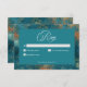 Gothic Antique Teal Gold Damask Wedding RSVP Card