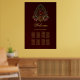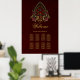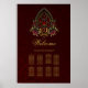 Gothic Archway with Skulls. Set against a mysterious, deep red background, a large Gothic archway rises majestically, decorated with ornate details. The two tall pillars, adorned with delicate carvings, lend the image a poignant elegance. In the middle of the archway shines an impressive stained glass window, the central motif of which is a spider a symbol of patience and creativity. Flanked by two golden skulls, reminiscent of both transience and eternal love, the archway captivates the viewer and promises a celebration full of mystery and fascination.
