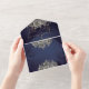 All in one gothic wedding invitation featuring black and gold roses florals falling across elegant typography on a midnight blue background. The invitation includes a perforated RSVP card that features your wedding website QR code and details. Designed by Thisisnotme©