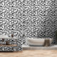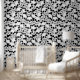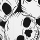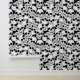 Gothic themed wallpaper featuring creepy white skeleton skulls on black. Perfect for decorating a feature wall in Halloween season