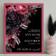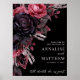 Till Death Do Us Part Dark Gothic Red And Black Floral Wedding Welcome Sign — a moody and romantic sign perfect for a gothic chic celebration. The design features a dramatic mix of black and red roses, grey foliage, deep burgundy branches, and pampas grass for a soft boho touch. Centred on the front are the bride and groom’s names and wedding date in a mix of elegant script and classic serif fonts. Above or below, the phrase “Till Death Do Us Part” is written in flowing script for a bold, dramatic finish. A striking way to welcome guests to your fall, winter, or gothic-inspired wedding.