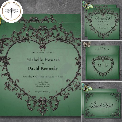 Gothic Black & Green Filigree Heart WeddingDesigned by Kathe Santillo