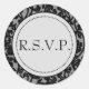 Gothic Black & Grey Flourish Envelope Seals. RSVP SEALS. Great wedding sticker label seals for all your invitation mailings! Featuring a great gothic victorian damask pattern in BLACK, WHITE AND GREY.