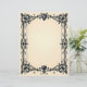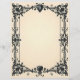 Black hearts at the top and bottom of an ornate, Victorian style frame on a parchment background creates a beautiful Gothic stationery. The top heart holds your monogram.