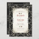 These 5" x 7" wedding invitations feature a gothic style with black and bone faux lace weathered paper and blood red roses with the introduction, "Together with their families, please join," along with placeholders for the wedding couple's first names, date, time, venue, venue address with the message at the bottom, "reception to follow."