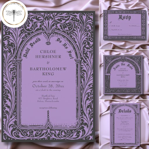 Gothic Black Purple Mediaeval Until Death Wedding Invitation
