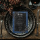 Transport your guests to a world of dark, enchanting elegance with our vintage gothic wedding menu card. The deep, aged royal blue background and black roses sets the stage for a striking contrast, as bold white text emerges from intricate black text boxes. The back is adorned with two intertwining vines of black roses as well as the couple's initials and wedding date, which adds a touch of dramatic allure. Unleash the magic and set the tone for an unforgettable wedding day. This card is part of the Created by Simply Farmhouse Press.