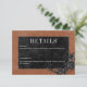 Transport your guests to a world of dark, enchanting elegance with our vintage gothic wedding details card. The deep, aged rust background sets the stage for a striking contrast, as bold white text emerges from intricate black text boxes. At the pinnacle of this invitation, a three-dimensional gothic border adorned with a regal black raven captures the essence of mystery and romance. The back is adorned with two intertwining vines of black roses subtly forming a heart around two embracing ravens, which adds a touch of dramatic allure. Unleash the magic and set the tone for an unforgettable wedding day. This card is part of the Gothic Black Raven & Black Roses Wedding Suite created by Simply Farmhouse Press.