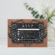 Transport your guests to a world of dark, enchanting elegance with our vintage gothic wedding response card. The deep, aged rust background sets the stage for a striking contrast, as bold white text emerges from intricate black text boxes. At the pinnacle of this invitation, a three-dimensional gothic border adorned with a regal black raven captures the essence of mystery and romance. The back is adorned with two intertwining vines of black roses subtly forming a heart around two embracing ravens, which adds a touch of dramatic allure. Unleash the magic and set the tone for an unforgettable wedding day. This card is part of the Gothic Black Raven & Black Roses Wedding Suite created by Simply Farmhouse Press.