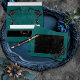Transport your guests to a world of dark, enchanting elegance with our vintage gothic wedding invitation envelope. The deep, aged distressed teal green background sets the stage for a striking contrast. The front text area is adorned with an intertwining vine of black roses, which adds a touch of dramatic allure. The back has a striking black and grey band displaying the couple's first initials in a gothic filigree heart cartouche. Unleash the magic and set the tone for an unforgettable wedding day. Created by Simply Farmhouse Press.