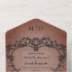 Celebrate your love in the grandeur of Gothic romance with our captivating wedding invitation. Embrace the dark allure and timeless elegance with our black three-dimensional filigree heart frame, enveloping bold black text against a vintage Victorian rust background. This invitation exudes a mysterious charm, perfect for couples seeking to infuse their wedding day with an air of dramatic sophistication. The intricate details of the filigree heart frame add depth and texture, creating a mesmerising focal point that captures the essence of your unique love story. As a final touch of personalisation, the back of the invitation features the same enchanting filigree heart frame adorned with the first initials of the couple, adding a subtle yet meaningful touch to this Gothic masterpiece. Let your wedding invitation set the stage for a celebration that is as unforgettable as it is romantic. Choose our Gothic filigree heart wedding invitation and embark on a journey to a day filled with passion, mystery, and everlasting love. Created by Simply Farmhouse Press.