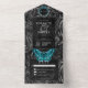 Gothic Black Teal Filigree Moth No Dinner Wedding All In One Invitation
