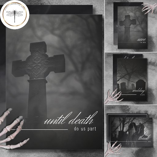 Gothic Black & White Cemetery Until Death Wedding Invitation