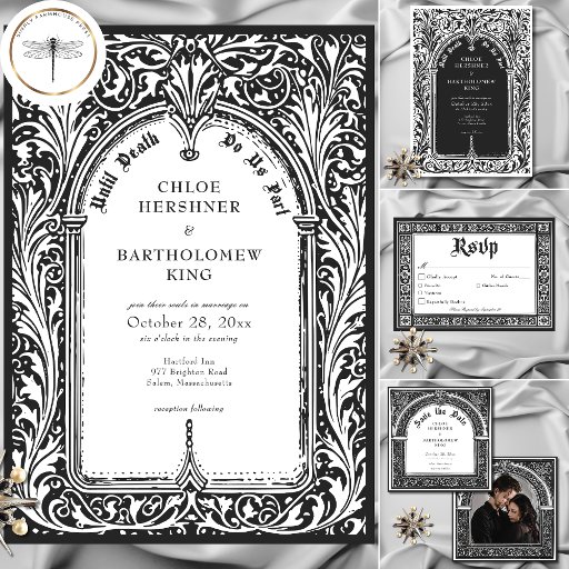 Gothic Black White Mediaeval Until Death Wedding RSVP Card