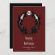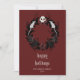 Skulls sit on a black wreath with poinsettia, rats, bats, spiders and a bow for this great dark holiday card design. Add your name and year on front (or remove) and a holiday message on the back.