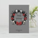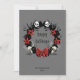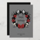 Skulls sit on a black wreath with poinsettias, bats and a bow for this great dark holiday card design. Add your name and year on front (or remove) and a holiday message on the back.