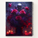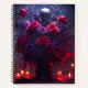 A bouquet of dried roses and sticks with a human skull in a dark vase, surrounded by candles, makes a beautiful Gothic notebook.