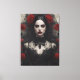 A gothic bride in her black wedding dress surrounded by red roses is ready for her Halloween day wedding. AI generated art