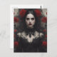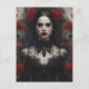 A gothic bride in her black wedding dress surrounded by red roses is ready for her Halloween day wedding. AI generated art