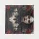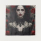 A gothic bride in her black wedding dress surrounded by red roses is ready for her Halloween day wedding. AI generated art