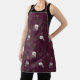 This Gothic Burgundy Floral Skulls Apron features intricate hand-drawn skulls intertwined with elegant roses, leaves, and botanical flourishes in detailed black ink set against a rich deep burgundy background. Behind the skull and floral artwork, a subtle transparent gradient pinstripe pattern adds depth, texture, and refined gothic elegance. The layered design blends dark romance with sophisticated detail, making it perfect for goth moms, Halloween hosts, alternative style lovers, and fans of moody floral aesthetics. Personalize with a name.