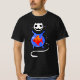 T- shirt with a skeleton ghost kitty cat and gold fish bowl.